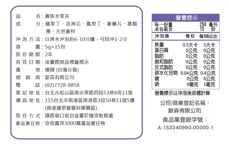 商品說明: 德國童話 貴族水果茶(15入/盒) Das Märchen 真實果粒系列